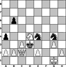 game notation in PGN-format [Event "Schach dem Osterhasen VIII"] [Site "www.myChess.de"] [Date "2020.04.07"] [Round "1"] [White "martinus"] [Black "Haneken"] [ECO "C41"] [WhitemyELO "1628"] [BlackmyELO "1133"] [Result "1-0"] [TimeControl "10/2592000"] [WhiteDays "30"] [BlackDays "30"] [MyChessNo "117930"] 1. e4 e5 2. Nf3 d6 3. Bc4 Be6 4. Bxe6 fxe6 5. d3 Nc6 6. Ng5 Qf6 7. O-O Nd4 8. f4 O-O-O 9. fxe5 Qg6 10. c3 Nb5 11. Nf7 h6 12. Nxh8 Qh7 13. Nf7 Rd7 14. Qa4 a6 15. Qc4 d5 16. exd5 exd5 17. Qg4 Bc5+ 18. d4 Bb6 19. e6 Re7 20. Ne5 Nf6 21. Qh4 Rxe6 22. Qh3 Qg8 23. Ng6 Qf7 24. Nf4 Kd7 25. Nxd5 Kd6 26. Nxb6 cxb6 27. Bf4+ Ke7 28. Nd2 a5 29. d5 Nxd5 30. Bd6+ Nxd6 31. Rxf7+ Kxf7 32. Rf1+ Ke7 33. Qf3 Nf6 34. Nb3 a4 35. Nd4 Re4 36. Qg3 Nde8 37. Rf5 Nd6 38. Re5+ Kf7 39. Rxe4 Ndxe4 40. Qc7+ Kg6 41. Qxb7 Kg5 42. Qxg7+ Kf4 43. g3+ Ke3 44. Qxh6+ Kd3 45. Qc1 Ng4 46. Qc2+ 1-0 position notation in FEN-format 8/8/1p6/8/p2Nn1n1/2Pk2P1/PPQ1P2P/6K1 - - - 4 46 Captured white pieces: Captured black pieces: Click on a captured piece in order to display the desired move!
