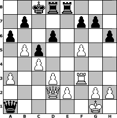 game notation in PGN-format [Event "Rechnerfrei B"] [Site "www.myChess.de"] [Date "2010.02.07"] [Round "1"] [White "espero"] [Black "brucybabe"] [ECO "B23"] [WhitemyELO "1773"] [BlackmyELO "1676"] [Result "0-1"] [TimeControl "10/1728000"] [WhiteDays "39"] [BlackDays "51"] [MyChessNo "63010"] 1. e4 c5 2. Nc3 Nc6 3. f4 e6 4. Nf3 d6 5. Bb5 Qc7 6. O-O Bd7 7. d3 a6 8. Bxc6 Bxc6 9. f5 exf5 10. exf5 O-O-O 11. Bg5 Be7 12. Qd2 Nf6 13. a3 h6 14. Bh4 Nd5 15. Nxd5 Bxd5 16. Bxe7 Qxe7 17. b4 Rhe8 18. c4 Bxf3 19. Rxf3 Qe5 20. b5 Qxa1+ 0-1 position notation in FEN-format 2krr3/1p3pp1/p2p3p/1Pp2P2/2P5/P2P1R2/3QP1PP/q5K1 - - - 0 21 Captured white pieces: ![]() ![]() ![]() ![]() ![]() ![]() ![]() ![]() ![]() ![]() ![]() ![]() ![]() ![]() ![]() Captured black pieces: ![]() ![]() ![]() ![]() ![]() ![]() ![]() ![]() ![]() ![]() ![]() ![]() ![]() ![]() ![]() Click on a captured piece in order to display the desired move!