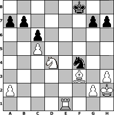 | game notation in PGN-format [Event "Winterturnier"] [Site "www.myChess.de"] [Date "2009.11.12"] [Round "1"] [White "Caligula"] [Black "beowulf"] [ECO "C36"] [WhitemyELO "1365"] [BlackmyELO "1355"] [Result "1-0"] [TimeControl "10/3456000"] [WhiteDays "160"] [BlackDays "159"] [MyChessNo "60572"] 1. e4 e5 2. f4 exf4 3. Nf3 d5 4. exd5 Nf6 5. c4 c6 6. d4 Bd6 7. c5 Bc7 8. d6 Ba5+ 9. Bd2 O-O 10. b4 Re8+ 11. Be2 Bxb4 12. Bxb4 Bg4 13. O-O Nd5 14. Bd2 Bxf3 15. Bxf3 Ne3 16. Bxe3 Rxe3 17. h3 Nd7 18. Re1 Qg5 19. Rxe3 fxe3 20. Nc3 Qg3 21. Ne4 Qg6 22. Qe2 Re8 23. Re1 Nf6 24. Qxe3 Nd5 25. Qe2 Nf4 26. Qc2 Kf8 27. Kh2 f5 28. d7 Rd8 29. Ng3 Rxd7 30. Qxf5+ Qxf5 31. Nxf5 Rxd4 32. Nxd4 1-0 position notation in FEN-format 5k2/pp4pp/2p5/2P5/3N1n2/5B1P/P5PK/4R3 - - - 0 32 Captured white pieces:                              Captured black pieces:                               Click on a captured piece in order to display the desired move!