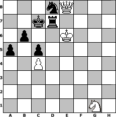 game notation in PGN-format [Event "1.Chess in Friendship"] [Site "www.myChess.de"] [Date "2004.08.10"] [Round "1"] [White "icke"] [Black "OwainGwynedd"] [ECO "A04"] [WhitemyELO "1272"] [BlackmyELO "1263"] [Result "1/2-1/2"] [TimeControl "10/2592000"] [WhiteDays "210"] [BlackDays "202"] [MyChessNo "6071"] 1. Nf3 d6 2. Nc3 e6 3. d4 c6 4. Bg5 Ne7 5. e4 Qa5 6. Qd2 h6 7. Bf4 Nd7 8. Bxd6 Qb6 9. Na4 Qd8 10. Ne5 Nb6 11. Nc5 Qxd6 12. g3 f6 13. Nc4 Nxc4 14. Bxc4 e5 15. Ne6 Bxe6 16. dxe5 Qxe5 17. Bxe6 Qxe6 18. Rd1 Qxe4+ 19. Kf1 Qxh1+ 20. Ke2 Qe4+ 21. Kf1 Nd5 22. Re1 Qxe1+ 23. Qxe1+ Be7 24. f4 O-O-O 25. c4 Nc7 26. Qe2 Rhe8 27. Qg4+ Rd7 28. Qxg7 Red8 29. Kg2 Re8 30. Qxh6 Rd2+ 31. Kh3 Rxb2 32. Qg7 Rxa2 33. Qg4+ Kb8 34. Qd7 Ra5 35. Qd2 Rh5+ 36. Kg4 Rg5+ 37. fxg5 fxg5 38. Qd3 Rd8 39. Qh7 Rd7 40. Qg8+ Rd8 41. Qg7 Rd7 42. h4 gxh4 43. gxh4 Kc8 44. h5 Ne6 45. Qg8+ Nd8 46. h6 a5 47. h7 Bf6 48. Kf5 Bg7 49. Kg6 c5 50. h8=Q Bxh8 51. Qxh8 Kc7 52. Qc3 b6 53. Qe5+ Rd6+ 54. Kf5 Nc6 55. Qg7+ Rd7 56. Qf8 Rd8 57. Qf7+ Rd7 58. Qe8 Nd8 59. Ke5 Nc6+ 60. Kf6 Nd8 61. Ke5 Nf7+ 62. Ke6 Nd8+ 63. Ke5 Nf7+ 64. Ke6 Nd8+ 1/2-1/2 position notation in FEN-format 3nQ3/2kr4/1p2K3/p1p5/2P5/8/8/6N1 - - - 24 65 Captured white pieces: Captured black pieces: Click on a captured piece in order to display the desired move!