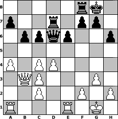 game notation in PGN-format [Event "Auf ein Neues 2"] [Site "www.myChess.de"] [Date "2021.03.20"] [Round "1"] [White "muetoe"] [Black "Grubengeist"] [ECO "A15"] [WhitemyELO "1637"] [BlackmyELO "2019"] [Result "1/2-1/2"] [TimeControl "10/2592000"] [WhiteDays "59"] [BlackDays "60"] [MyChessNo "121565"] 1. c4 Nf6 2. d4 e6 3. Nc3 Bb4 4. Bg5 c5 5. Nf3 h6 6. Bxf6 Qxf6 7. e3 cxd4 8. exd4 Bxc3+ 9. bxc3 b6 10. g3 Bb7 11. Bg2 Nc6 12. O-O O-O 13. Ne5 Qe7 14. Bxc6 Bxc6 15. Nxc6 dxc6 16. Re1 Qd6 17. Qb3 Rad8 18. a4 Rd7 1/2-1/2 position notation in FEN-format 5rk1/p2r1pp1/1ppqp2p/8/P1PP4/1QP3P1/2P2P1P/R3R1K1 - - - 1 19 Captured white pieces: Captured black pieces: Click on a captured piece in order to display the desired move!