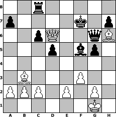 game notation in PGN-format [Event "Fernschach f"] [Site "www.myChess.de"] [Date "2008.04.06"] [Round "1"] [White "Andylein1989"] [Black "neve"] [ECO "B33"] [WhitemyELO "1409"] [BlackmyELO "1491"] [Result "0-1"] [TimeControl "10/864000"] [WhiteDays "06"] [BlackDays "10"] [MyChessNo "44108"] 1. e4 c5 2. Nf3 Nc6 3. d4 cxd4 4. Nxd4 Nf6 5. Nc3 e5 6. Nxc6 bxc6 7. Bc4 Bb4 8. Bd2 O-O 9. O-O Re8 10. h3 Bxc3 11. Bxc3 Nxe4 12. Qf3 d5 13. Bb3 Be6 14. Bxe5 Nd2 15. Qg3 f6 16. Bf4 Nxf1 17. Rxf1 Rc8 18. Bh6 g6 19. Re1 Bf5 20. Rxe8+ Qxe8 21. f3 g5 22. h4 Qg6 23. hxg5 Kf7 24. Qd6 fxg5 0-1 position notation in FEN-format 2r5/p4k1p/2pQ2qB/3p1bp1/8/1B3P2/PPP1P1P1/6K1 - - - 0 25 Captured white pieces: Captured black pieces: Click on a captured piece in order to display the desired move!