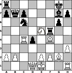 game notation in PGN-format [Event "2016"] [Site "www.myChess.de"] [Date "2016.01.01"] [Round "1"] [White "Helmut48"] [Black "alibengali"] [ECO "D09"] [WhitemyELO "1965"] [BlackmyELO "1621"] [Result "1-0"] [TimeControl "10/2592000"] [WhiteDays "30"] [BlackDays "28"] [MyChessNo "101929"] 1. d4 d5 2. c4 e5 3. dxe5 d4 4. Nf3 Nc6 5. g3 g6 6. Bg2 Bg7 7. Bf4 Be6 8. Nbd2 Nge7 9. Rc1 O-O 10. Nb3 Nf5 11. h3 f6 12. g4 fxe5 13. gxf5 Rxf5 14. Nc5 Bxc4 15. Nxb7 Qb8 16. Rxc4 Qxb7 17. Nxe5 1-0 position notation in FEN-format r5k1/pqp3bp/2n3p1/4Nr2/2Rp1B2/7P/PP2PPB1/3QK2R - K - 0 17 Captured white pieces: Captured black pieces: Click on a captured piece in order to display the desired move!