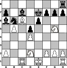 game notation in PGN-format [Event "d4 f"] [Site "www.myChess.de"] [Date "2005.05.31"] [Round "2"] [White "bane"] [Black "Sanji"] [ECO "A56"] [WhitemyELO "1762"] [BlackmyELO "1554"] [Result "1-0"] [TimeControl "10/1728000"] [WhiteDays "60"] [BlackDays "60"] [MyChessNo "13763"] 1. d4 Nf6 2. c4 c5 3. dxc5 e6 4. Be3 Ng4 5. Bd4 Nc6 6. e3 Nxd4 7. exd4 Nf6 8. Qe2 b6 9. cxb6 Qxb6 10. c5 Qb4+ 11. Qd2 Qxd2+ 12. Nxd2 d5 13. b4 Be7 14. Bb5+ Bd7 15. c6 Bc8 16. c7+ Nd7 17. Bc6 Bd6 18. Bxa8 Bxc7 19. Rc1 Kd8 20. Ngf3 Ba6 21. Bc6 Nb6 22. Ng5 Ke7 23. b5 1-0 position notation in FEN-format 7r/p1b1kppp/bnB1p3/1P1p2N1/3P4/8/P2N1PPP/2R1K2R - K - 0 23 Captured white pieces: Captured black pieces: Click on a captured piece in order to display the desired move!