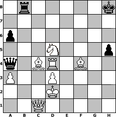 game notation in PGN-format [Event "Ostern 2011"] [Site "www.myChess.de"] [Date "2011.03.18"] [Round "2"] [White "lotchi"] [Black "Duschgel"] [ECO "B11"] [WhitemyELO "1413"] [BlackmyELO "1606"] [Result "1-0"] [TimeControl "10/2592000"] [WhiteDays "118"] [BlackDays "114"] [MyChessNo "72838"] 1. e4 c6 2. Nc3 d5 3. Nf3 d4 4. Ne2 c5 5. d3 Nc6 6. a3 e5 7. Bd2 Bg4 8. h3 Bxf3 9. gxf3 Be7 10. c4 Nf6 11. Bg2 O-O 12. f4 Nh5 13. fxe5 Nxe5 14. Qb3 Qc7 15. O-O-O f5 16. f4 Ng6 17. e5 Rab8 18. Bd5+ Kh8 19. Rdg1 b5 20. cxb5 a6 21. Bf3 Rxb5 22. Qc2 Nhxf4 23. Nxf4 Nxe5 24. Bd5 Rfb8 25. Rxg7 Qb6 26. Rhg1 Ng4 27. Rxe7 Rxb2 28. Re8+ Rxe8 29. Qxb2 Qd6 30. hxg4 fxg4 31. Kc2 Rb8 32. Qc1 Qb6 33. Rxg4 c4 34. Bxc4 Qb7 35. Nd5 Qd7 36. Rxd4 h5 37. Bf4 Qa4+ 38. Kd2 1-0 position notation in FEN-format 1r5k/8/p7/3N3p/q1BR1B2/P2P4/3K4/2Q5 - - - 3 38 Captured white pieces: Captured black pieces: Click on a captured piece in order to display the desired move!