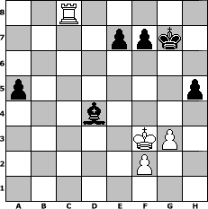 game notation in PGN-format [Event "DWZ-Tr"] [Site "www.myChess.de"] [Date "2015.03.05"] [Round "1"] [White "Grubengeist"] [Black "haggard"] [ECO "B34"] [WhitemyELO "1896"] [BlackmyELO "2008"] [Result "1/2-1/2"] [TimeControl "10/864000"] [WhiteDays "29"] [BlackDays "38"] [MyChessNo "98417"] 1. e4 c5 2. Nf3 Nc6 3. d4 cxd4 4. Nxd4 g6 5. Be3 Bg7 6. Nc3 Nf6 7. Be2 O-O 8. Qd2 d5 9. exd5 Nxd5 10. Nxc6 bxc6 11. Nxd5 cxd5 12. c3 Qc7 13. O-O Rb8 14. Rac1 Bf5 15. Rfd1 Rfd8 16. Bf3 Be4 17. Bxe4 dxe4 18. Qc2 Rd3 19. Rxd3 exd3 20. Qxd3 Rxb2 21. c4 Rxa2 22. c5 Bb2 23. Rd1 h5 24. g3 Bf6 25. Qc4 Ra3 26. Bf4 Qc8 27. c6 Rc3 28. c7 Rxc4 29. Rd8+ Kg7 30. Rxc8 g5 31. Rd8 gxf4 32. c8=Q Rxc8 33. Rxc8 fxg3 34. hxg3 Bd4 35. Kg2 a5 36. Kf3 1/2-1/2 position notation in FEN-format 2R5/4ppk1/8/p6p/3b4/5KP1/5P2/8 - - - 1 36 Captured white pieces: Captured black pieces: Click on a captured piece in order to display the desired move!