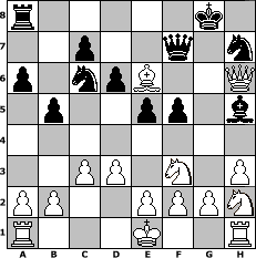 game notation in PGN-format [Event "Februar 2017"] [Site "www.myChess.de"] [Date "2017.02.05"] [Round "1"] [White "Andylein1989"] [Black "MiFie"] [ECO "C41"] [WhitemyELO "1658"] [BlackmyELO "1052"] [Result "1-0"] [TimeControl "10/1728000"] [WhiteDays "60"] [BlackDays "55"] [MyChessNo "106767"] 1. e4 e5 2. Nf3 d6 3. Bc4 Nf6 4. d3 Bg4 5. h3 Bh5 6. Nbd2 Nc6 7. Nf1 Nd4 8. N1h2 a6 9. Be3 Nc6 10. c3 h6 11. Qc1 Be7 12. Bb3 O-O 13. Bc2 b5 14. Nh4 g6 15. Bxh6 Re8 16. Bg5 Nh7 17. Bxe7 Qxe7 18. N4f3 f5 19. exf5 gxf5 20. Qh6 Qf7 21. Bb3 Re6 22. Bxe6 1-0 position notation in FEN-format r5k1/2p2q1n/p1npB2Q/1p2pp1b/8/2PP1N1P/PP2PPPN/R3K2R - KQ - 0 22 Captured white pieces: Captured black pieces: Click on a captured piece in order to display the desired move!