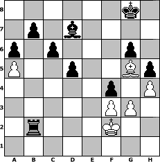 game notation in PGN-format [Event "Sommer-ade,scheiden tut weh."] [Site "www.myChess.de"] [Date "2013.09.18"] [Round "1"] [White "Haneken"] [Black "balesbenk1"] [ECO "C44"] [WhitemyELO "1095"] [BlackmyELO "1525"] [Result "0-1"] [TimeControl "10/1728000"] [WhiteDays "20"] [BlackDays "20"] [MyChessNo "90294"] 1. e4 e5 2. Nf3 Nc6 3. Be2 Bc5 4. O-O Nge7 5. Nc3 a6 6. Na4 Bd6 7. d4 exd4 8. Nxd4 Nxd4 9. Qxd4 O-O 10. e5 Nc6 11. Qe4 Bxe5 12. Bd3 g6 13. Bh6 Re8 14. Qd5 Nb4 15. Qc4 Nxd3 16. Qxd3 Qh4 17. Qh3 Qxa4 18. Rac1 Bxb2 19. Qb3 Qxb3 20. cxb3 Bxc1 21. Rxc1 c6 22. Be3 d5 23. a4 f5 24. h4 h5 25. Bg5 Bd7 26. a5 Re4 27. f3 Re2 28. Kf1 Rae8 29. b4 Rb2 30. Re1 Rxe1+ 31. Kxe1 Rxb4 32. Kf2 f4 33. g3 Rb2+ 0-1 position notation in FEN-format 6k1/1p1b4/p1p3p1/P2p2Bp/5p1P/5PP1/1r3K2/8 - - - 1 34 Captured white pieces: Captured black pieces: Click on a captured piece in order to display the desired move!
