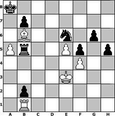 game notation in PGN-format [Event "Anti-Skandinavisch oder Schach ist kein Tennis"] [Site "www.myChess.de"] [Date "2011.10.01"] [Round "1"] [White "espero"] [Black "woern63"] [ECO "A06"] [WhitemyELO "1672"] [BlackmyELO "1896"] [Result "0-1"] [TimeControl "10/1728000"] [WhiteDays "20"] [BlackDays "20"] [MyChessNo "76539"] 1. Nf3 d5 2. e4 Bg4 3. exd5 Qxd5 4. Be2 Nc6 5. O-O O-O-O 6. h3 Bh5 7. Nc3 Qf5 8. g4 Bxg4 9. hxg4 Qxg4+ 10. Kh1 e6 11. Nh2 Qh4 12. f4 Nf6 13. Qe1 Qh3 14. Rf3 Qf5 15. Bd3 Rxd3 16. cxd3 Nd4 17. Qe5 Nxf3 18. Qxf5 exf5 19. Nxf3 Nh5 20. Ne2 Bd6 21. Ne5 Re8 22. d4 f6 23. d3 fxe5 24. dxe5 Bc5 25. d4 Bb6 26. Be3 c6 27. Kg2 Rd8 28. Kf3 g6 29. b4 Rd7 30. a4 Ng7 31. a5 Bd8 32. b5 cxb5 33. Nc3 b4 34. Nb5 Kb8 35. d5 Rxd5 36. Bxa7+ Ka8 37. Bb6 Rxb5 38. Bxd8 b3 39. Bb6 b2 40. Rb1 Ne6 41. Ke3 h5 0-1 position notation in FEN-format k7/1p6/1B2n1p1/Pr2Pp1p/5P2/4K3/1p6/1R6 - - - 0 42 Captured white pieces: ![]() ![]() ![]() ![]() ![]() ![]() ![]() ![]() ![]() ![]() ![]() ![]() ![]() ![]() ![]() Captured black pieces: ![]() ![]() ![]() ![]() ![]() ![]() ![]() ![]() ![]() ![]() ![]() ![]() ![]() ![]() ![]() Click on a captured piece in order to display the desired move!