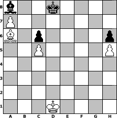 game notation in PGN-format [Event "Spiel mit Fallen-Das Budapester Gambit!!!"] [Site "www.myChess.de"] [Date "2015.11.27"] [Round "1"] [White "PeterLoskarn"] [Black "Peterlie77 (C)"] [ECO "A52"] [WhitemyELO "2107"] [BlackmyELO "2097"] [Result "1-0"] [TimeControl "10/2592000"] [WhiteDays "30"] [BlackDays "00"] [MyChessNo "101355"] 1. d4 Nf6 2. c4 e5 3. dxe5 Ng4 4. Bf4 Nc6 5. Nf3 Bb4+ 6. Nbd2 Qe7 7. e3 Ngxe5 8. Nxe5 Nxe5 9. Be2 O-O 10. O-O Bxd2 11. Qxd2 d6 12. b4 Rd8 13. Rfd1 Bf5 14. Qb2 f6 15. a4 a5 16. c5 axb4 17. Qxb4 d5 18. Bxe5 fxe5 19. Qxb7 Rab8 20. Qc6 Rb2 21. Bf1 Qf7 22. f3 Bc2 23. Re1 e4 24. Re2 exf3 25. gxf3 Rdb8 26. Rc1 Bg6 27. Rxb2 Rxb2 28. Qa8+ Qe8 29. Qxe8+ Bxe8 30. Ra1 Bc6 31. a5 Kf7 32. a6 Ke7 33. a7 Ba8 34. Ra3 g6 35. Bd3 Kd7 36. h4 c6 37. f4 Ke6 38. Kf1 Kf6 39. Ke1 Ke7 40. Ra4 Ke6 41. Kd1 Ke7 42. Kc1 Rb7 43. Kc2 Kd7 44. f5 gxf5 45. Bxf5+ Ke8 46. Kc3 h6 47. h5 Kf7 48. Bc2 Ke6 49. Rg4 Ke5 50. Rg6 Rh7 51. Re6+ Kxe6 52. Bxh7 Kd7 53. Bd3 Kc7 54. Ba6 Kd7 55. Kd4 Ke6 56. e4 dxe4 57. Kxe4 Kf6 58. Bc8 Ke7 59. Kf5 Kd8 60. Ba6 1-0 position notation in FEN-format b2k4/P7/B1p4p/2P4P/8/8/8/3K4 - - - 6 60 Captured white pieces: Captured black pieces: Click on a captured piece in order to display the desired move!