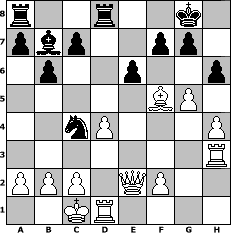 game notation in PGN-format [Event "Mal wieder spielen 2"] [Site "www.myChess.de"] [Date "2013.05.12"] [Round "1"] [White "lmilde1 (adv.)"] [Black "FrankB"] [ECO "C10"] [WhitemyELO "1507"] [BlackmyELO "1621"] [Result "1-0"] [TimeControl "10/1728000"] [WhiteDays "30"] [BlackDays "33"] [MyChessNo "88293"] 1. e4 e6 2. d4 d5 3. Nc3 dxe4 4. Nxe4 Nf6 5. Bg5 Be7 6. Bxf6 Bxf6 7. Nf3 Bd7 8. Qd2 Bc6 9. Nxf6+ Qxf6 10. Ne5 O-O 11. O-O-O Rd8 12. Qe3 h6 13. h4 b6 14. Rh3 Bb7 15. g4 Nd7 16. g5 Qf5 17. Bd3 Nxe5 18. Bxf5 Nc4 19. Qe2 1-0 position notation in FEN-format r2r2k1/pbp2pp1/1p2p2p/5BP1/2nP3P/7R/PPP1QP2/2KR4 - - - 2 19 Captured white pieces: Captured black pieces: Click on a captured piece in order to display the desired move!