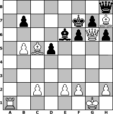 Game opened on 2003-10-04, 12:06am and finished on 2003-10-23, 03:35pm White player: tomnrw Black player: chesserin tomnrw has won the game! | |