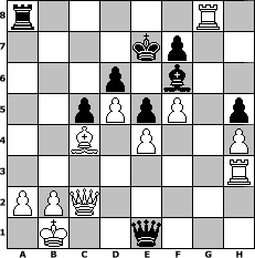 game notation in PGN-format [Event "Pott Schach - Glück Auf die xte."] [Site "www.myChess.de"] [Date "2020.11.05"] [Round "1"] [White "kalle"] [Black "martinus"] [ECO "E73"] [WhitemyELO "1560"] [BlackmyELO "1648"] [Result "1/2-1/2"] [TimeControl "10/2592000"] [WhiteDays "088"] [BlackDays "120"] [MyChessNo "119751"] 1. d4 Nf6 2. c4 g6 3. Nc3 Bg7 4. e4 d6 5. Be2 O-O 6. Be3 Nbd7 7. Qd2 e5 8. d5 a6 9. f3 Nh5 10. O-O-O c5 11. g4 Nhf6 12. h4 h5 13. Nh3 Nb6 14. Bg5 Qe8 15. gxh5 Bxh3 16. Bxf6 Bxf6 17. Rxh3 Kg7 18. f4 Rh8 19. f5 gxh5 20. Rg1+ Kf8 21. Kb1 Ke7 22. Qd1 Qf8 23. Na4 Nxa4 24. Qxa4 Qd8 25. Qd1 b5 26. cxb5 axb5 27. Bxb5 Qa5 28. Bc4 Qb4 29. Qc2 Rhg8 30. Rxg8 Qe1+ 1/2-1/2 position notation in FEN-format r5R1/4kp2/3p1b2/2pPpP1p/2B1P2P/7R/PPQ5/1K2q3 - - - 1 31 Captured white pieces: Captured black pieces: Click on a captured piece in order to display the desired move!