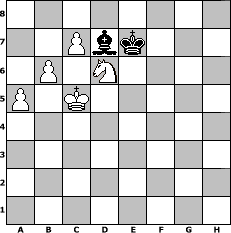 game notation in PGN-format [Event "Kellertunier"] [Site "www.myChess.de"] [Date "2005.08.15"] [Round "2"] [White "crca108"] [Black "thello"] [ECO "A45"] [WhitemyELO "1396"] [BlackmyELO "1394"] [Result "1-0"] [TimeControl "10/864000"] [WhiteDays "10"] [BlackDays "10"] [MyChessNo "16271"] 1. d4 Nf6 2. Nc3 d5 3. Bf4 e6 4. a3 Bd6 5. Bg5 O-O 6. e4 Be7 7. Qe2 dxe4 8. Bxf6 Bxf6 9. Qxe4 Nc6 10. Nf3 Nxd4 11. O-O-O c5 12. Na4 Qa5 13. b3 Rd8 14. Bd3 g6 15. Qf4 Nf5 16. g4 e5 17. Qe4 Nd4 18. h4 Nxf3 19. Qxf3 Re8 20. Qxf6 Bxg4 21. Rde1 Re6 22. Qg5 Bf3 23. Rh3 f6 24. Qg1 Bh5 25. Bc4 Kf7 26. f4 Rd8 27. fxe5 Qd2+ 28. Kb1 Qxe1+ 29. Qxe1 Rd1+ 30. Qxd1 Bxd1 31. Nxc5 Bg4 32. Rg3 Bf5 33. Nxb7 Kg7 34. Bxe6 Bxe6 35. exf6+ Kxf6 36. Rg5 h6 37. Ra5 g5 38. hxg5+ hxg5 39. Rxa7 g4 40. Ra4 Kg5 41. Re4 Bf5 42. Re1 g3 43. Rg1 Kg4 44. Nd6 Bg6 45. a4 Kf3 46. Kb2 Kf2 47. Rxg3 Kxg3 48. c4 Bh7 49. Kc3 Kf4 50. Kd4 Bg8 51. b4 Be6 52. c5 Bd7 53. b5 Kg5 54. c6 Be6 55. c7 Kf6 56. Kc5 Ke7 57. b6 Bd7 58. a5 1-0 position notation in FEN-format 8/2Pbk3/1P1N4/P1K5/8/8/8/8 - - - 0 58 Captured white pieces: ![]() ![]() ![]() ![]() ![]() ![]() ![]() ![]() ![]() ![]() ![]() ![]() ![]() ![]() ![]() Captured black pieces: ![]() ![]() ![]() ![]() ![]() ![]() ![]() ![]() ![]() ![]() ![]() ![]() ![]() ![]() ![]() Click on a captured piece in order to display the desired move!