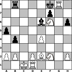 game notation in PGN-format [Event "Der Sommer kommt"] [Site "www.myChess.de"] [Date "2017.05.24"] [Round "2"] [White "Steffi"] [Black "MiFie"] [ECO "D06"] [WhitemyELO "1579"] [BlackmyELO "1032"] [Result "1-0"] [TimeControl "10/2592000"] [WhiteDays "81"] [BlackDays "79"] [MyChessNo "108336"] 1. d4 d5 2. c4 c5 3. dxc5 dxc4 4. Qxd8+ Kxd8 5. e4 e6 6. Nc3 Bxc5 7. Bxc4 Nc6 8. Bf4 Nd4 9. O-O-O Nf6 10. Bg5 h6 11. Bxf6+ gxf6 12. Nge2 Rg8 13. Nxd4 Rxg2 14. Nxe6+ Ke7 15. Nxc5 Rxf2 16. Nb5 b6 17. Nd3 a6 18. Nc7 Rb8 19. Nxf2 b5 20. Nd5+ Kd7 21. Nxf6+ Ke7 22. Nd5+ Kf8 23. Be2 a5 24. Rhg1 b4 25. Nf6 Be6 26. Rg8+ 1-0 position notation in FEN-format 1r3kR1/5p2/4bN1p/p7/1p2P3/8/PP1PBN1P/2KR4 - - - 3 26 Captured white pieces: Captured black pieces: Click on a captured piece in order to display the desired move!