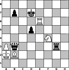 game notation in PGN-format [Event "Zug um Zug dem Sieg entgegen"] [Site "www.myChess.de"] [Date "2015.06.21"] [Round "1"] [White "alpacino"] [Black "Chaosms"] [ECO "D00"] [WhitemyELO "1314"] [BlackmyELO "1343"] [Result "0-1"] [TimeControl "10/2592000"] [WhiteDays "28"] [BlackDays "30"] [MyChessNo "99524"] 1. d4 d5 2. e3 Nf6 3. Nc3 e6 4. Bd3 Nc6 5. a3 a6 6. Nf3 h6 7. Bd2 Bd6 8. Qe2 g5 9. h3 Bd7 10. O-O-O Qe7 11. Kb1 O-O-O 12. Bxa6 Na7 13. Bd3 g4 14. hxg4 Nxg4 15. Ne5 h5 16. Nxg4 hxg4 17. Rhg1 Rdg8 18. g3 f5 19. Ka1 Nc6 20. Bb5 Na7 21. Bd3 c5 22. dxc5 Bxc5 23. f3 gxf3 24. Qxf3 Rh3 25. Ne2 Nc6 26. Be1 Ne5 27. Qf4 Bd6 28. Bb4 Nxd3 29. Bxd6 Nxf4 30. Nxf4 Qh7 31. Ne2 f4 32. Nxf4 Rhxg3 33. Rxg3 Rxg3 34. Re1 Qxc2 35. Be5 Qf2 36. Rh1 Qxe3 37. Rh8+ Be8 38. Rxe8+ Kd7 39. Rxe6 Qc1+ 40. Ka2 Qc4+ 41. b3 Qc2+ 42. Bb2 Qxb3+ 0-1 position notation in FEN-format 8/1p1k4/4R3/3p4/5N2/Pq4r1/KB6/8 - - - 0 43 Captured white pieces: Captured black pieces: Click on a captured piece in order to display the desired move!