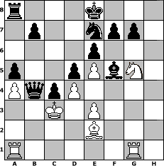 game notation in PGN-format [Event "Prätorianer"] [Site "www.myChess.de"] [Date "2023.01.04"] [Round "1"] [White "Achimkogge"] [Black "Master1"] [ECO "B12"] [WhitemyELO "1307"] [BlackmyELO "1340"] [Result "0-1"] [TimeControl "10/1728000"] [WhiteDays "18"] [BlackDays "12"] [MyChessNo "128919"] 1. e4 c6 2. d4 d5 3. e5 Bf5 4. Nc3 e6 5. h4 h6 6. g4 Bh7 7. a3 c5 8. Be3 c4 9. g5 Nc6 10. b4 a6 11. b5 Nce7 12. Qb1 a5 13. a4 Nf5 14. b6 Nxe3 15. fxe3 Bb4 16. Kd2 hxg5 17. h5 Qxb6 18. Qb2 Ne7 19. Nh3 Be4 20. Rg1 Rxh5 21. Nxg5 Rh2+ 22. Ke1 Rxc2 23. Qxc2 Bxc2 24. Kd2 Bf5 25. Be2 Bxc3+ 26. Kxc3 Qb4# 0-1 position notation in FEN-format r3k3/1p2npp1/4p3/p2pPbN1/PqpP4/2K1P3/4B3/R5R1 - q - 1 27 Captured white pieces: Captured black pieces: Click on a captured piece in order to display the desired move!
