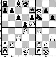game notation in PGN-format [Event "Herbstturnier bis 1600"] [Site "www.myChess.de"] [Date "2025.10.14"] [Round "1"] [White "Campino1986"] [Black "faustballer"] [ECO "D00"] [WhitemyELO "1558"] [BlackmyELO "1445"] [Result "1/2-1/2"] [TimeControl "10/2592000"] [WhiteDays "56"] [BlackDays "60"] [MyChessNo "133757"] 1. d4 d5 2. Bf4 c6 3. e3 Nd7 4. c3 e6 5. Nd2 h6 6. Ngf3 Be7 7. Be2 Ngf6 8. O-O Nh5 9. Ne5 Nxf4 10. exf4 Bf6 11. h3 O-O 12. Bh5 Be7 13. Nxf7 Rxf7 14. Bxf7+ Kxf7 15. Nf3 Nf6 16. Ne5+ 1/2-1/2 position notation in FEN-format r1bq4/pp2bkp1/2p1pn1p/3pN3/3P1P2/2P4P/PP3PP1/R2Q1RK1 - - - 3 16 Captured white pieces: Captured black pieces: Click on a captured piece in order to display the desired move!