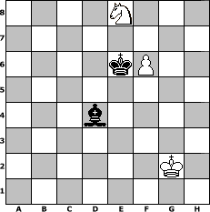 game notation in PGN-format [Event " Fluegel Gambit"] [Site "www.myChess.de"] [Date "2005.12.13"] [Round "2"] [White "bane"] [Black "Stoertebecker"] [ECO "B20"] [WhitemyELO "1469"] [BlackmyELO "1649"] [Result "1/2-1/2"] [TimeControl "10/2592000"] [WhiteDays "150"] [BlackDays "069"] [MyChessNo "20675"] 1. e4 c5 2. b4 cxb4 3. a3 d5 4. exd5 Qxd5 5. Bb2 e5 6. Nf3 Nc6 7. c4 Qd6 8. Nxe5 Nxe5 9. Qe2 f6 10. f4 Bg4 11. Qe3 O-O-O 12. fxe5 Qc5 13. Qxc5+ Bxc5 14. axb4 Bxb4 15. Rxa7 fxe5 16. Ra4 Bc5 17. Bxe5 Nf6 18. Ra8+ Kd7 19. Rxd8+ Rxd8 20. d4 Re8 21. Kd2 Ne4+ 22. Kc2 Nf2 23. Rg1 Rxe5 24. dxe5 Bf5+ 25. Kc1 Nh3 26. g4 Be3+ 27. Kb2 Nxg1 28. gxf5 Bd4+ 29. Kc2 Bxe5 30. Kd3 Bxh2 31. Bg2 b6 32. Nc3 h5 33. Nd5 Kd6 34. Nxb6 Ke5 35. Be4 h4 36. Nd7+ Kd6 37. Nf8 Nh3 38. Ng6 Nf2+ 39. Ke3 Nxe4 40. Kxe4 h3 41. Kf3 Bg1 42. Nf4 h2 43. Kg2 Kc5 44. Ne6+ Kxc4 45. Nxg7 Kd5 46. f6 h1=Q+ 47. Kxh1 Bd4 48. Ne8 Ke6 49. Kg2 1/2-1/2 position notation in FEN-format 4N3/8/4kP2/8/3b4/8/6K1/8 - - - 4 49 Captured white pieces: Captured black pieces: Click on a captured piece in order to display the desired move!
