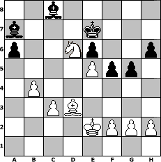 game notation in PGN-format [Event "Auf ein Neues 2"] [Site "www.myChess.de"] [Date "2021.03.20"] [Round "1"] [White "nyffhans"] [Black "kalle"] [ECO "B50"] [WhitemyELO "2086"] [BlackmyELO "1566"] [Result "1-0"] [TimeControl "10/2592000"] [WhiteDays "86"] [BlackDays "85"] [MyChessNo "121601"] 1. e4 c5 2. Nf3 d6 3. Nc3 Nc6 4. d4 cxd4 5. Nxd4 Nf6 6. Bg5 e6 7. Qd2 Be7 8. O-O-O a6 9. Bxf6 Bxf6 10. Nxc6 bxc6 11. Qxd6 Qxd6 12. Rxd6 Bb7 13. Bc4 Ke7 14. Rhd1 Rhd8 15. Rxd8 Rxd8 16. Rxd8 Kxd8 17. Kd2 Kd7 18. Na4 Kd6 19. b4 Bd4 20. Ke2 f5 21. Bd3 Bc8 22. c3 Ba7 23. a3 h6 24. Nb2 c5 25. Nc4+ Ke7 26. e5 cxb4 27. axb4 g5 28. Nd6 1-0 position notation in FEN-format 2b5/b3k3/p2Np2p/4Ppp1/1P6/2PB4/4KPPP/8 - - - 1 28 Captured white pieces: Captured black pieces: Click on a captured piece in order to display the desired move!