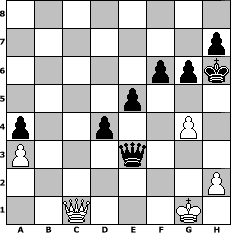 game notation in PGN-format [Event "READY TO RUMBLE!!!"] [Site "www.myChess.de"] [Date "2004.01.27"] [Round "1"] [White "kalle"] [Black "UPS"] [ECO "B32"] [WhitemyELO "1502"] [BlackmyELO "1483"] [Result "0-1"] [TimeControl "10/3456000"] [WhiteDays "239"] [BlackDays "239"] [MyChessNo "2040"] 1. e4 c5 2. Nf3 Nc6 3. d4 cxd4 4. Nxd4 e6 5. Be3 a6 6. Bd3 d5 7. exd5 Nxd4 8. Bxd4 Qxd5 9. O-O Bd7 10. c3 Bc6 11. f3 Bc5 12. Be4 Bxd4+ 13. Kh1 Qb5 14. Bxc6+ bxc6 15. cxd4 Qxb2 16. Qa4 Ne7 17. Na3 O-O 18. Rfb1 Qd2 19. Qc4 Rfd8 20. Nc2 Nf5 21. Rd1 Qf2 22. Qc3 Rac8 23. g3 Qe2 24. Rab1 a5 25. Rd2 Qa6 26. Kg2 g6 27. g4 Ne7 28. Ne3 Nd5 29. Nxd5 cxd5 30. Qa3 Rc4 31. Qe7 Qd6 32. Qa7 a4 33. Rb7 Qf4 34. Rdb2 Rf8 35. a3 Rxd4 36. R7b4 Rd2+ 37. Rxd2 Qxd2+ 38. Kg3 Qe1+ 39. Kg2 Rc8 40. Rb8 Qe2+ 41. Kg1 Rxb8 42. Qxb8+ Kg7 43. Qg3 d4 44. Qg2 Qd1+ 45. Qf1 Qb3 46. Qf2 e5 47. Qe1 f6 48. Qc1 Qxf3 49. Qc7+ Kh6 50. Qc1+ Qe3+ 0-1 position notation in FEN-format 8/7p/5ppk/4p3/p2p2P1/P3q3/7P/2Q3K1 - - - 4 51 Captured white pieces: ![]() ![]() ![]() ![]() ![]() ![]() ![]() ![]() ![]() ![]() ![]() ![]() ![]() ![]() ![]() Captured black pieces: ![]() ![]() ![]() ![]() ![]() ![]() ![]() ![]() ![]() ![]() ![]() ![]() ![]() ![]() ![]() Click on a captured piece in order to display the desired move!