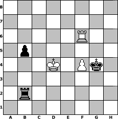 game notation in PGN-format [Event "wie w"] [Site "www.myChess.de"] [Date "2013.11.16"] [Round "1"] [White "Vahl1"] [Black "Joschi"] [ECO "A16"] [WhitemyELO "1667"] [BlackmyELO "1574"] [Result "1/2-1/2"] [TimeControl "10/1728000"] [WhiteDays "20"] [BlackDays "20"] [MyChessNo "91113"] 1. c4 Nf6 2. Nc3 c5 3. g3 Nc6 4. Bg2 e6 5. Nf3 d5 6. cxd5 exd5 7. d4 Be6 8. Qb3 b6 9. Bg5 Be7 10. Qd1 h6 11. Bxf6 Bxf6 12. e3 O-O 13. O-O Qd7 14. a3 Rad8 15. Re1 Bg4 16. Qd3 c4 17. Qd2 Qf5 18. e4 dxe4 19. Rxe4 Bxf3 20. Rf4 Bg5 21. Rxf5 Bxd2 22. Bxf3 Nxd4 23. Bg4 Nxf5 24. Bxf5 Bxc3 25. bxc3 Rd5 26. Be4 Re5 27. f3 f5 28. Bc6 Rc8 29. f4 Re3 30. Bd7 Rc7 31. Bxf5 Rxc3 32. a4 Re3 33. Kf2 Ree7 34. h4 c3 35. Rc1 Rc5 36. Bc2 a6 37. Rd1 b5 38. axb5 axb5 39. Rd8+ Kf7 40. Bb3+ Kg6 41. Rd6+ Kf5 42. Kf3 Re3+ 43. Kxe3 c2 44. Bxc2+ Rxc2 45. Rb6 Rb2 46. Rb7 g6 47. Kd4 Kg4 48. Rg7 Kxg3 49. Rxg6+ Kxh4 50. Rxh6+ Kg4 51. Rf6 1/2-1/2 position notation in FEN-format 8/8/5R2/1p6/3K1Pk1/8/1r6/8 - - - 2 51 Captured white pieces: Captured black pieces: Click on a captured piece in order to display the desired move!