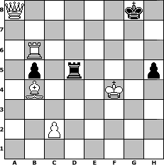 game notation in PGN-format [Event "Zwischendurch mal ein paar eigene Z"] [Site "www.myChess.de"] [Date "2009.02.11"] [Round "1"] [White "hape50"] [Black "steff"] [ECO "D00"] [WhitemyELO "1408"] [BlackmyELO "1207"] [Result "1-0"] [TimeControl "10/1728000"] [WhiteDays "100"] [BlackDays "089"] [MyChessNo "52662"] 1. d4 d5 2. h3 Nc6 3. Nf3 Nf6 4. e3 Bf5 5. Bd3 Be4 6. Bxe4 Nxe4 7. Bd2 e6 8. Nc3 Be7 9. Nxe4 dxe4 10. Ne5 Nxe5 11. dxe5 O-O 12. O-O Bh4 13. Qe2 Qg5 14. Qc4 c6 15. Qxe4 f5 16. Qc4 Rfe8 17. Rad1 Rac8 18. e4 f4 19. Qc3 a6 20. Qf3 Rf8 21. a4 b5 22. a5 Qxe5 23. Bc3 Qg5 24. Rd7 e5 25. b4 Qf6 26. g3 fxg3 27. Qxf6 gxf2+ 28. Qxf2 Bxf2+ 29. Rxf2 c5 30. Bxe5 cxb4 31. Rxg7+ Kh8 32. Rxf8+ Rxf8 33. Ra7+ Kg8 34. Rxa6 Re8 35. Bc7 Rxe4 36. Bd6 Re3 37. Bxb4 Rxh3 38. Rb6 Rh5 39. a6 Rg5+ 40. Kf2 Rf5+ 41. Ke3 h5 42. a7 Re5+ 43. Kf4 Rd5 44. a8=Q+ 1-0 position notation in FEN-format Q5k1/8/1R6/1p1r3p/1B3K2/8/2P5/8 - - - 0 44 Captured white pieces: Captured black pieces: Click on a captured piece in order to display the desired move!