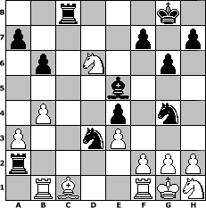 game notation in PGN-format [Event "2016"] [Site "www.myChess.de"] [Date "2016.01.01"] [Round "1"] [White "FrankB"] [Black "alibengali"] [ECO "A46"] [WhitemyELO "1669"] [BlackmyELO "1621"] [Result "0-1"] [TimeControl "10/2592000"] [WhiteDays "30"] [BlackDays "30"] [MyChessNo "101915"] 1. d4 Nf6 2. Nf3 d5 3. e3 g6 4. c4 Bg7 5. Nc3 O-O 6. Be2 c5 7. dxc5 Qa5 8. O-O dxc4 9. Bxc4 Qxc5 10. Qb3 Nc6 11. Na4 Qh5 12. Qb5 Bg4 13. Qxh5 Bxh5 14. Be2 e5 15. Nc3 e4 16. Nd2 Bxe2 17. Nxe2 Rfe8 18. Ng3 Nb4 19. a3 Nd3 20. Rb1 Rac8 21. b4 Rc2 22. Nb3 Ng4 23. Nh1 Ra2 24. Na5 b6 25. Nc4 Rc8 26. Nd6 Be5 0-1 position notation in FEN-format 2r3k1/p4p1p/1p1N2p1/4b3/1P2p1n1/P2nP3/r4PPP/1RB2RKN - - - 4 27 Captured white pieces: Captured black pieces: Click on a captured piece in order to display the desired move!