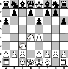 game notation in PGN-format [Event "Turnier in den M"] [Site "www.myChess.de"] [Date "2014.02.19"] [Round "1"] [White "Ziegert"] [Black "Winston"] [ECO "B28"] [WhitemyELO "1485"] [BlackmyELO "1450"] [Result "0-1"] [TimeControl "10/2592000"] [WhiteDays "00"] [BlackDays "30"] [MyChessNo "93091"] 1. e4 c5 2. Nf3 a6 3. d4 cxd4 4. Nxd4 h6 5. Nc3 e6 0-1 position notation in FEN-format rnbqkbnr/1p1p1pp1/p3p2p/8/3NP3/2N5/PPP1PPPP/R1BQKB1R - KQkq - 0 6 Captured white pieces: Captured black pieces: Click on a captured piece in order to display the desired move!
