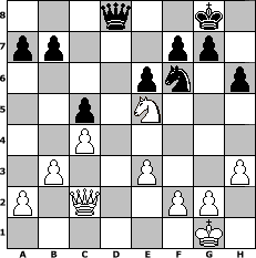 game notation in PGN-format [Event "Winter 2011/12"] [Site "www.myChess.de"] [Date "2011.12.22"] [Round "1"] [White "Koprek"] [Black "Erich"] [ECO "E32"] [WhitemyELO "1996"] [BlackmyELO "2016"] [Result "1/2-1/2"] [TimeControl "10/2592000"] [WhiteDays "68"] [BlackDays "90"] [MyChessNo "78362"] 1. d4 Nf6 2. c4 e6 3. Nc3 Bb4 4. Qc2 O-O 5. Nf3 c5 6. dxc5 Na6 7. Bd2 Nxc5 8. e3 d6 9. Be2 Bd7 10. O-O Rc8 11. Ne4 Bxd2 12. Nxc5 dxc5 13. Nxd2 Qb6 14. Rad1 Rfd8 15. Bf3 h6 16. b3 Bc6 17. Bxc6 Qxc6 18. Nf3 Qc7 19. h3 Rxd1 20. Rxd1 Rd8 21. Rxd8+ Qxd8 22. Ne5 1/2-1/2 position notation in FEN-format 3q2k1/pp3pp1/4pn1p/2p1N3/2P5/1P2P2P/P1Q2PP1/6K1 - - - 1 22 Captured white pieces: Captured black pieces: Click on a captured piece in order to display the desired move!