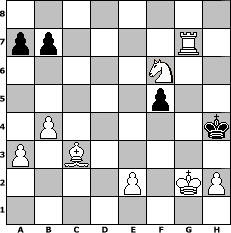game notation in PGN-format [Event "Munich South Central"] [Site "www.myChess.de"] [Date "2010.10.19"] [Round "2"] [White "Achimkogge"] [Black "Gauss1233"] [ECO "B01"] [WhitemyELO "1325"] [BlackmyELO "1492"] [Result "1-0"] [TimeControl "10/864000"] [WhiteDays "37"] [BlackDays "34"] [MyChessNo "69132"] 1. e4 d5 2. e5 e6 3. d4 c5 4. Bb5+ Bd7 5. Bxd7+ Nxd7 6. c3 cxd4 7. Qxd4 Bc5 8. Qg4 g6 9. Nf3 Qb6 10. O-O Ne7 11. b4 Bxf2+ 12. Rxf2 O-O 13. Qf4 Nf5 14. a3 Qc7 15. Bb2 f6 16. g4 fxe5 17. Qg5 Nd6 18. Nbd2 Nf6 19. Nxe5 Qe7 20. Raf1 Nde8 21. c4 Rd8 22. Nxg6 hxg6 23. Qxg6+ Qg7 24. Qxg7+ Kxg7 25. g5 dxc4 26. Nxc4 Rc8 27. gxf6+ Nxf6 28. Bxf6+ Kg6 29. Rg2+ Kh7 30. Rg7+ Kh6 31. Ne3 Rc3 32. Ng4+ Kh5 33. Bxc3 Rf5 34. Rxf5+ exf5 35. Nf6+ Kh4 36. Kg2 1-0 position notation in FEN-format 8/pp4R1/5N2/5p2/1P5k/P1B5/4P1KP/8 - - - 3 36 Captured white pieces: Captured black pieces: Click on a captured piece in order to display the desired move!