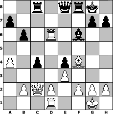 game notation in PGN-format [Event "Herbstturnier 2004"] [Site "www.myChess.de"] [Date "2004.09.02"] [Round "1"] [White "torsten64"] [Black "HPB2005"] [ECO "E12"] [WhitemyELO "1836"] [BlackmyELO "1928"] [Result "1/2-1/2"] [TimeControl "10/2592000"] [WhiteDays "58"] [BlackDays "86"] [MyChessNo "6511"] 1. d4 Nf6 2. c4 e6 3. Nf3 b6 4. a3 d5 5. Nc3 Be7 6. cxd5 exd5 7. Bf4 O-O 8. e3 c5 9. Be2 Bb7 10. O-O Nc6 11. Ne5 Nxe5 12. dxe5 Ne4 13. Nxe4 dxe4 14. Qa4 Qd5 15. Rfd1 Bc6 16. Bb5 Bxb5 17. Qxb5 Qe6 18. Qa4 f5 19. exf6 Bxf6 20. Rd6 Qe8 21. Qc2 Rc8 22. Rd1 c4 23. a4 1/2-1/2 position notation in FEN-format 2r1qrk1/p5pp/1p1R1b2/8/P1p1pB2/4P3/1PQP1PPP/3R2K1 - - - 0 23 Captured white pieces: ![]() ![]() ![]() ![]() ![]() ![]() ![]() ![]() ![]() ![]() ![]() ![]() ![]() ![]() ![]() Captured black pieces: ![]() ![]() ![]() ![]() ![]() ![]() ![]() ![]() ![]() ![]() ![]() ![]() ![]() ![]() ![]() Click on a captured piece in order to display the desired move!
