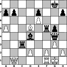 game notation in PGN-format [Event "2.HSF-Clubmeisterschaften 2011/12 Gruppe B"] [Site "www.myChess.de"] [Date "2011.09.01"] [Round "1"] [White "Greenhorn"] [Black "woern63"] [ECO "A81"] [WhitemyELO "1516"] [BlackmyELO "1898"] [Result "0-1"] [TimeControl "10/2592000"] [WhiteDays "23"] [BlackDays "30"] [MyChessNo "75991"] 1. d4 f5 2. g3 g6 3. Bg2 c6 4. Nf3 Nf6 5. O-O d6 6. c4 Bg7 7. Nc3 O-O 8. d5 cxd5 9. cxd5 Na6 10. a3 Bd7 11. b4 Ne4 12. Bb2 Nxc3 13. Bxc3 Bxc3 14. Rb1 Rc8 15. Ng5 Bf6 16. Ne6 Bxe6 17. dxe6 Qb6 18. e3 Nc7 19. Qb3 Nb5 20. a4 Nc3 21. Rbe1 g5 22. a5 Qb5 23. e4 Rc4 24. exf5 Rxb4 25. Qa3 Rb3 26. Qc1 Ne2+ 27. Rxe2 Qxe2 28. Re1 Qg4 29. Be4 Rc3 30. Qb1 d5 31. Bxd5 Bd4 32. Rf1 Rxf5 0-1 position notation in FEN-format 6k1/pp2p2p/4P3/P2B1rp1/3b2q1/2r3P1/3P1P1P/1Q3RK1 - - - 0 33 Captured white pieces: ![]() ![]() ![]() ![]() ![]() ![]() ![]() ![]() ![]() ![]() ![]() ![]() ![]() ![]() ![]() Captured black pieces: ![]() ![]() ![]() ![]() ![]() ![]() ![]() ![]() ![]() ![]() ![]() ![]() ![]() ![]() ![]() Click on a captured piece in order to display the desired move!