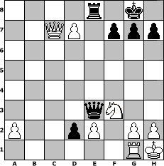 game notation in PGN-format [Event "Wildes Gemetzel Teil 3 oder Over2000"] [Site "www.myChess.de"] [Date "2006.02.20"] [Round "1"] [White "Pater"] [Black "Juliette2103"] [ECO "C36"] [WhitemyELO "2022"] [BlackmyELO "2105"] [Result "1-0"] [TimeControl "10/2592000"] [WhiteDays "30"] [BlackDays "26"] [MyChessNo "22694"] 1. e4 e5 2. f4 exf4 3. Nf3 d5 4. exd5 Nf6 5. Bb5+ Bd7 6. Bxd7+ Nbxd7 7. O-O Nxd5 8. Re1+ Be7 9. d4 O-O 10. c4 Ne3 11. Bxe3 fxe3 12. Rxe3 c5 13. d5 Bf6 14. Qc2 Re8 15. Rxe8+ Qxe8 16. Nbd2 Qe3+ 17. Kh1 Re8 18. Qa4 Nf8 19. Qxa7 Bxb2 20. Rg1 Re7 21. Nb3 b5 22. Qa6 bxc4 23. Qxc4 Nd7 24. Qb5 Bd4 25. Nbxd4 cxd4 26. d6 Re8 27. Qxd7 d3 28. Qc7 d2 29. d7 1-0 position notation in FEN-format 4r1k1/2QP1ppp/8/8/8/4qN2/P2pP1PP/6RK - - - 0 29 Captured white pieces: Captured black pieces: Click on a captured piece in order to display the desired move!