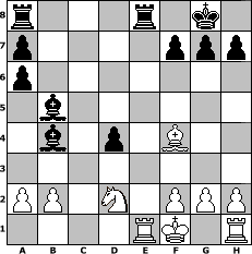game notation in PGN-format [Event "Trotz Sturm und Regen die Figuren bewegen II"] [Site "www.myChess.de"] [Date "2025.08.15"] [Round "1"] [White "kalle"] [Black "Ziegert"] [ECO "D20"] [WhitemyELO "1623"] [BlackmyELO "2005"] [Result "0-1"] [TimeControl "10/2592000"] [WhiteDays "43"] [BlackDays "07"] [MyChessNo "133586"] 1. d4 d5 2. c4 dxc4 3. e4 e5 4. Bxc4 Qxd4 5. Qxd4 exd4 6. Bf4 Nf6 7. Bxc7 Nxe4 8. Nf3 Bb4+ 9. Nbd2 Nxd2 10. Nxd2 Bf5 11. Bb5+ Bd7 12. Bd3 O-O 13. Bf4 Re8+ 14. Kf1 Na6 15. Bxa6 bxa6 16. Re1 Bb5+ 0-1 position notation in FEN-format r3r1k1/p4ppp/p7/1b6/1b1p1B2/8/PP1N1PPP/4RK1R - - - 2 17 Captured white pieces: Captured black pieces: Click on a captured piece in order to display the desired move!