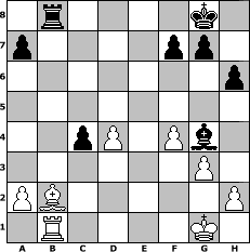 game notation in PGN-format [Event "M"] [Site "www.myChess.de"] [Date "2012.07.12"] [Round "1"] [White "Steffi"] [Black "Stecher1966"] [ECO "D11"] [WhitemyELO "1548"] [BlackmyELO "1478"] [Result "0-1"] [TimeControl "10/3456000"] [WhiteDays "40"] [BlackDays "40"] [MyChessNo "82689"] 1. d4 d5 2. c4 c6 3. Nf3 e6 4. Qc2 Nf6 5. g3 h6 6. Bg2 Ne4 7. cxd5 cxd5 8. Nc3 Nxc3 9. bxc3 Be7 10. O-O O-O 11. e4 dxe4 12. Qxe4 Nc6 13. Bb2 Qc7 14. Rfd1 Bd7 15. d5 exd5 16. Qxd5 Be6 17. Qd2 Rfd8 18. Nd4 Bg4 19. f3 Bg5 20. f4 Bf6 21. Rdc1 Qb6 22. Bxc6 bxc6 23. Qf2 Re8 24. Re1 c5 25. Nb3 c4 26. Nd4 Rab8 27. Rxe8+ Rxe8 28. Rb1 Bxd4 29. Qxd4 Qxd4+ 30. cxd4 Rb8 0-1 position notation in FEN-format 1r4k1/p4pp1/7p/8/2pP1Pb1/6P1/PB5P/1R4K1 - - - 1 31 Captured white pieces: Captured black pieces: Click on a captured piece in order to display the desired move!