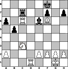 game notation in PGN-format [Event "Ohne techn. Hilfsmittel..."] [Site "www.myChess.de"] [Date "2013.02.13"] [Round "1"] [White "Tigerle"] [Black "hape50"] [ECO "C41"] [WhitemyELO "1601"] [BlackmyELO "1323"] [Result "1-0"] [TimeControl "10/864000"] [WhiteDays "17"] [BlackDays "27"] [MyChessNo "86550"] 1. e4 e5 2. Nf3 d6 3. d4 exd4 4. c3 dxc3 5. Bc4 a6 6. O-O b5 7. Bd5 c6 8. Bb3 cxb2 9. Bxb2 Nf6 10. e5 Nd5 11. Bxd5 cxd5 12. Qxd5 Ra7 13. exd6 Qxd6 14. Re1+ Be6 15. Qxd6 Bxd6 16. Bxg7 Rg8 17. Bf6 Kf8 18. Nc3 Nc6 19. Rad1 Bh3 20. Ng5 Be5 21. Rxe5 Rxg5 22. Rxg5 Be6 23. Rc5 Rc7 24. Rxc6 1-0 position notation in FEN-format 5k2/2r2p1p/p1R1bB2/1p6/8/2N5/P3PPPP/3R2K1 - - - 0 24 Captured white pieces: Captured black pieces: Click on a captured piece in order to display the desired move!