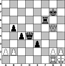 game notation in PGN-format [Event "Winteranfang 2017"] [Site "www.myChess.de"] [Date "2017.12.21"] [Round "1"] [White "kalle"] [Black "espero"] [ECO "A65"] [WhitemyELO "1660"] [BlackmyELO "2047"] [Result "1/2-1/2"] [TimeControl "10/3456000"] [WhiteDays "29"] [BlackDays "29"] [MyChessNo "110796"] 1. d4 Nf6 2. c4 c5 3. d5 e6 4. Nc3 exd5 5. cxd5 d6 6. e4 g6 7. Bb5+ Nbd7 8. Bg5 Bg7 9. Nf3 O-O 10. O-O h6 11. Bf4 Qe7 12. Re1 Nh5 13. Be3 Ne5 14. Be2 Bg4 15. Nxe5 Bxe2 16. Nxg6 fxg6 17. Qxe2 Nf4 18. Qd2 g5 19. f3 Rf7 20. Rac1 Raf8 21. Rf1 a6 22. Ne2 Be5 23. Ng3 b5 24. Nf5 Rxf5 25. exf5 Rxf5 26. Rce1 Qf7 27. Bxf4 Rxf4 28. Rxe5 dxe5 29. Qc2 Rc4 30. Qb3 Rd4 31. Qa3 Qxd5 32. Qxa6 c4 33. Qxh6 Rd2 34. Qxg5+ Kf7 35. Qf5+ Ke7 36. Qg5+ Kf7 37. f4 Qd4+ 38. Kh1 e4 39. f5 Rf2 40. Rg1 e3 41. f6 Rxf6 42. Qh5+ Kg7 43. Qg5+ Kf7 44. Qh5+ Kg7 45. Qg5+ Kf7 46. Qh5+ Kg7 47. Qg5+ 1/2-1/2 position notation in FEN-format 8/6k1/5r2/1p4Q1/2pq4/4p3/PP4PP/6RK - - - 11 47 Captured white pieces: Captured black pieces: Click on a captured piece in order to display the desired move!