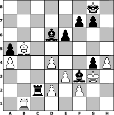 game notation in PGN-format [Event "Spanisch?"] [Site "www.myChess.de"] [Date "2016.09.07"] [Round "2"] [White "miu"] [Black "Naunhofer"] [ECO "E00"] [WhitemyELO "1529"] [BlackmyELO "1639"] [Result "0-1"] [TimeControl "10/2592000"] [WhiteDays "112"] [BlackDays "120"] [MyChessNo "104837"] 1. d4 Nf6 2. c4 e6 3. g3 d5 4. Bg5 Be7 5. Nc3 O-O 6. Rc1 dxc4 7. Bg2 c6 8. e3 b5 9. Nxb5 Qa5+ 10. Nc3 Qxg5 11. Nf3 Qa5 12. Ne5 Qa6 13. O-O Nd5 14. a3 Nb6 15. Nxc6 Nxc6 16. Bxc6 Bb7 17. Bb5 Qa5 18. Ra1 Nd5 19. Bxc4 Nxc3 20. bxc3 Qxc3 21. Qb3 Qxb3 22. Bxb3 Rab8 23. Bc4 Bf3 24. a4 a5 25. Rab1 Rxb1 26. Rxb1 Bb4 27. Bb5 Rc8 28. h4 h5 29. Kh2 Rc2 30. g4 hxg4 31. Kg3 Bd6# 0-1 position notation in FEN-format 6k1/5pp1/3bp3/pB6/P2P2pP/4PbK1/2rP1P2/1R6 - - - 2 32 Captured white pieces: Captured black pieces: Click on a captured piece in order to display the desired move!