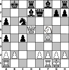 game notation in PGN-format [Event "Pfingsturnier"] [Site "www.myChess.de"] [Date "2019.05.31"] [Round "2"] [White "Grubengeist"] [Black "Joschi"] [ECO "B13"] [WhitemyELO "2044"] [BlackmyELO "1499"] [Result "1-0"] [TimeControl "10/2592000"] [WhiteDays "46"] [BlackDays "60"] [MyChessNo "115136"] 1. e4 c6 2. d4 d5 3. exd5 cxd5 4. Nf3 Nc6 5. Bb5 Bd7 6. O-O Nf6 7. c4 e6 8. Nc3 a6 9. Ba4 dxc4 10. d5 exd5 11. Nxd5 Nxd5 12. Qxd5 b5 13. Ng5 Qe7 14. Bf4 O-O-O 15. Nxf7 bxa4 16. Nd6+ Kb8 17. Nf5+ 1-0 position notation in FEN-format 1k1r1b1r/3bq1pp/p1n5/3Q1N2/p1p2B2/8/PP2PPPP/R4RK1 - - - 3 17 Captured white pieces: Captured black pieces: Click on a captured piece in order to display the desired move!