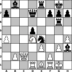 game notation in PGN-format [Event "Zur Fastenzeit"] [Site "www.myChess.de"] [Date "2018.03.15"] [Round "1"] [White "martinus"] [Black "Helmut48"] [ECO "E20"] [WhitemyELO "1682"] [BlackmyELO "1998"] [Result "0-1"] [TimeControl "10/3456000"] [WhiteDays "38"] [BlackDays "40"] [MyChessNo "111734"] 1. d4 Nf6 2. c4 e6 3. Nc3 Bb4 4. Bd2 O-O 5. Nf3 d5 6. a3 Be7 7. e3 b6 8. cxd5 exd5 9. h3 c5 10. Be2 Nc6 11. O-O Bb7 12. Qc2 Rc8 13. dxc5 bxc5 14. Rad1 Bd6 15. Nb5 Bb8 16. Qxc5 Ne4 17. Qc2 Nd4 18. Qd3 Nxe2+ 19. Qxe2 Rc6 20. Be1 Rg6 21. a4 Re8 22. Qc2 Bc8 23. h4 Bh3 24. g3 Qd7 25. Ng5 Nxg5 26. Nd4 Ne4 0-1 position notation in FEN-format 1b2r1k1/p2q1ppp/6r1/3p4/P2Nn2P/4P1Pb/1PQ2P2/3RBRK1 - - - 2 27 Captured white pieces: ![]() ![]() ![]() ![]() ![]() ![]() ![]() ![]() ![]() ![]() ![]() ![]() ![]() ![]() ![]() Captured black pieces: ![]() ![]() ![]() ![]() ![]() ![]() ![]() ![]() ![]() ![]() ![]() ![]() ![]() ![]() ![]() Click on a captured piece in order to display the desired move!