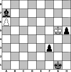 game notation in PGN-format [Event "Herbst Open 2014"] [Site "www.myChess.de"] [Date "2014.09.23"] [Round "1"] [White "pepo47"] [Black "Grubengeist"] [ECO "A00"] [WhitemyELO "2057"] [BlackmyELO "1880"] [Result "0-1"] [TimeControl "10/3456000"] [WhiteDays "20"] [BlackDays "40"] [MyChessNo "95999"] 1. Nc3 e5 2. e4 Nf6 3. Nf3 Nc6 4. Bb5 Nd4 5. Nxe5 Qe7 6. f4 Nxb5 7. Nxb5 d6 8. Nf3 Qxe4+ 9. Kf2 Ng4+ 10. Kg3 Qg6 11. Nh4 Qf6 12. h3 g5 13. Qe2+ Ne5 14. Nf3 gxf4+ 15. Kh2 Kd8 16. d4 Nc6 17. N5c3 Bh6 18. Re1 Rg8 19. Kh1 Ne7 20. Ne4 Qe6 21. Qf2 Bd7 22. Nc5 Qf6 23. Nxb7+ Kc8 24. Na5 Nf5 25. d5 Qg7 26. Rb1 Qg3 27. Qxg3 Nxg3+ 28. Kh2 Bf5 29. Nc6 Bxc2 30. Ne7+ Kd7 31. Nxg8 Rxg8 32. Ra1 Be4 33. b3 Bxd5 34. Rb1 c5 35. Rd1 Kc6 36. b4 Be4 37. Rb2 c4 38. Nd4+ Kd7 39. Rf2 Nh5 40. Bb2 d5 41. Nf3 Ng3 42. a3 Nf5 43. Nd2 Ne3 44. Nxe4 Nxd1 45. Nf6+ Kc6 46. Nxg8 Bg5 47. b5+ Kc5 48. Bd4+ Kxd4 49. Rd2+ Kc5 50. Rxd1 d4 51. h4 Bxh4 52. Kh3 Bd8 53. Nh6 c3 54. Rc1 Kc4 55. Ng4 Bc7 56. Nf6 d3 57. Nd5 c2 58. Nb4 Kc3 59. Kg4 Bd6 60. Nxc2 d2 61. Ra1 Kxc2 62. Ra2+ Kd3 63. Ra1 Ke2 64. Ra2 Ke1 65. Ra1+ d1=Q+ 66. Rxd1+ Kxd1 67. Kf3 Ke1 68. a4 Kf1 69. a5 Bb8 70. a6 f5 71. b6 h5 72. bxa7 Bxa7 73. g3 fxg3 74. Kxg3 Kg1 75. Kh4 f4 76. Kg5 f3 0-1 position notation in FEN-format 8/b7/P7/6Kp/8/5p2/8/6k1 - - - 0 77 Captured white pieces: ![]() ![]() ![]() ![]() ![]() ![]() ![]() ![]() ![]() ![]() ![]() ![]() ![]() ![]() ![]() Captured black pieces: ![]() ![]() ![]() ![]() ![]() ![]() ![]() ![]() ![]() ![]() ![]() ![]() ![]() ![]() ![]() Click on a captured piece in order to display the desired move!