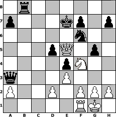 | game notation in PGN-format [Event "Sommersonnenwende"] [Site "www.myChess.de"] [Date "2007.06.15"] [Round "1"] [White "nogumo"] [Black "lure"] [ECO "A00"] [WhitemyELO "1676"] [BlackmyELO "1449"] [Result "1-0"] [TimeControl "10/1728000"] [WhiteDays "55"] [BlackDays "60"] [MyChessNo "35737"] 1. b4 e5 2. Bb2 d6 3. c4 Nf6 4. e3 Be6 5. Nf3 Nbd7 6. Nc3 d5 7. c5 Be7 8. Nb5 c6 9. Nc3 e4 10. Nd4 Bg4 11. Be2 Bxe2 12. Ncxe2 b6 13. Nxc6 Qc7 14. Nxe7 Kxe7 15. Nf4 bxc5 16. bxc5 Qxc5 17. Rc1 Qb4 18. Bd4 Rhb8 19. O-O Rc8 20. Rxc8 Rxc8 21. Bc3 Qa3 22. Qb1 Rb8 23. Qa1 g5 24. Bxf6+ Nxf6 25. Qe5+ 1-0 position notation in FEN-format 1r6/p3kp1p/5n2/3pQ1p1/4pN2/q3P3/P2P1PPP/5RK1 - - - 1 25 Captured white pieces:                              Captured black pieces:                               Click on a captured piece in order to display the desired move!