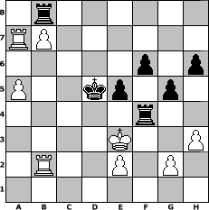 game notation in PGN-format [Event "MLN Winterturnier 2013"] [Site "www.myChess.de"] [Date "2013.12.01"] [Round "1"] [White "Helmut48"] [Black "martinus"] [ECO "B30"] [WhitemyELO "1965"] [BlackmyELO "1769"] [Result "1-0"] [TimeControl "10/2592000"] [WhiteDays "30"] [BlackDays "29"] [MyChessNo "91425"] 1. e4 c5 2. Nf3 Nc6 3. Nc3 d6 4. d4 cxd4 5. Nxd4 e5 6. Nxc6 bxc6 7. Bc4 Nf6 8. O-O Be7 9. Qd3 O-O 10. h3 h6 11. Be3 Qc7 12. Rad1 Bb7 13. Bb3 a5 14. Rfe1 Ba6 15. Bc4 Bb7 16. Bd2 d5 17. exd5 cxd5 18. Nxd5 Nxd5 19. Bxd5 Bxd5 20. Qxd5 Qxc2 21. Bxa5 Bc5 22. Rd2 Rxa5 23. Rxc2 Bxf2+ 24. Kxf2 Rxd5 25. b4 Rfd8 26. Rb2 f6 27. b5 Rb8 28. a4 Kf7 29. Rc1 Rd4 30. a5 Ra4 31. Rc7+ Ke6 32. Ra7 Rf4+ 33. Ke3 g5 34. b6 Kd5 35. b7 1-0 position notation in FEN-format 1r6/RP6/5p1p/P2kp1p1/5r2/4K2P/1R2P1P1/8 - - - 0 35 Captured white pieces: Captured black pieces: Click on a captured piece in order to display the desired move!
