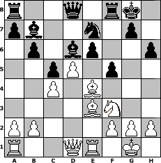 game notation in PGN-format [Event "Herbstturnier bis 1600"] [Site "www.myChess.de"] [Date "2025.10.14"] [Round "1"] [White "Master1"] [Black "Campino1986"] [ECO "D00"] [WhitemyELO "1404"] [BlackmyELO "1558"] [Result "*"] [TimeControl "10/2592000"] [WhiteDays "37"] [BlackDays "40"] [MyChessNo "133755"] 1. d4 d5 2. e3 Nf6 3. Bd3 e6 4. Nf3 Bd6 5. O-O O-O 6. Nbd2 c5 7. c3 b6 8. Re1 Nc6 9. e4 dxe4 10. Nxe4 Nxe4 11. Bxe4 Bb7 12. Be3 h6 13. d5 Ne7 14. c4 f5 * position notation in FEN-format r2q1rk1/pb2n1p1/1p1bp2p/2pP1p2/2P1B3/4BN2/PP3PPP/R2QR1K1 w - - 0 15 Captured white pieces: Captured black pieces: Click on a captured piece in order to display the desired move!