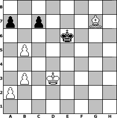 game notation in PGN-format [Event "Albspiele 15"] [Site "www.myChess.de"] [Date "2011.08.25"] [Round "1"] [White "reisender"] [Black "Haki"] [Variant "Fischerrandom"] [SetUp "1"] [FEN "rnqknbbr/pppppppp/8/8/8/8/PPPPPPPP/RNQKNBBR w KQkq - 0 1"] [WhitemyELO "1413"] [BlackmyELO "1297"] [Result "1-0"] [TimeControl "10/1728000"] [WhiteDays "20"] [BlackDays "20"] [MyChessNo "75754"] 1. d4 d5 2. e3 f6 3. Nc3 Nd6 4. g3 e6 5. h4 Qd7 6. Bh3 Nc6 7. Bh2 O-O-O 8. Qd2 Qf7 9. Nf3 Nc4 10. Qc1 f5 11. b3 Nd6 12. Ng5 Qd7 13. O-O h6 14. Nf3 g5 15. hxg5 hxg5 16. Nxg5 Be7 17. f4 Bxg5 18. Bxf5 Nxf5 19. fxg5 Qh7 20. Rf2 Nxg3 21. Qd2 Ne4 22. Nxe4 Qxe4 23. Re1 Qg4+ 24. Rg2 Qe4 25. Rf1 e5 26. dxe5 Nxe5 27. Qe2 Be6 28. Rf4 Qh7 29. e4 Ng6 30. Rf6 dxe4 31. Rxe6 Rdf8 32. Qxe4 Qh5 33. Qg4 Qxg4 34. Rxg4 Rh4 35. Rxh4 Nxh4 36. g6 Nf5 37. Be5 Kd7 38. Rf6 Rxf6 39. Bxf6 Ke6 40. Bb2 Nh6 41. Kg2 Kf5 42. g7 b5 43. Kf2 Kg6 44. Ke2 Kf7 45. Kd3 Nf5 46. c4 Nxg7 47. cxb5 Ke6 48. Bxg7 1-0 position notation in FEN-format 8/p1p3B1/4k3/1P6/8/1P1K4/P7/8 - - - 0 48 Captured white pieces: Captured black pieces: Click on a captured piece in order to display the desired move!