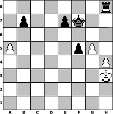 game notation in PGN-format [Event "PUNSCH-Turnier"] [Site "www.myChess.de"] [Date "2010.10.18"] [Round "1"] [White "lotchi"] [Black "pepo47"] [ECO "D01"] [WhitemyELO "1291"] [BlackmyELO "1690"] [Result "0-1"] [TimeControl "10/2592000"] [WhiteDays "30"] [BlackDays "30"] [MyChessNo "69075"] 1. d4 d5 2. Nc3 Nf6 3. Nf3 g6 4. e3 Bg7 5. Bb5+ Nbd7 6. Ne5 c6 7. Bd3 Nxe5 8. dxe5 Nd7 9. f4 Nc5 10. O-O Qb6 11. a3 f6 12. exf6 Bxf6 13. Qd2 Nxd3 14. Qxd3 Bf5 15. Qe2 h6 16. h3 Qc5 17. Qd2 O-O-O 18. g4 d4 19. Ne2 dxe3 20. Qxe3 Qxe3+ 21. Bxe3 Bxc2 22. Bxa7 Kc7 23. a4 Bd3 24. Kf2 Bxb2 25. Ra2 Bg7 26. a5 Rd5 27. Bb6+ Kd6 28. Rd2 c5 29. f5 Bd4+ 30. Nxd4 Bxf1 31. Kxf1 Rxd4 32. Rxd4+ cxd4 33. Bxd4 Rf8 34. Bg7 Rf7 35. Bxh6 gxf5 36. g5 Rh7 37. h4 Ke6 38. Kf2 Rxh6 39. Kg3 Rh8 40. Kh3 Kf7 0-1 position notation in FEN-format 7r/1p2pk2/8/P4pP1/7P/7K/8/8 - - - 4 41 Captured white pieces: ![]() ![]() ![]() ![]() ![]() ![]() ![]() ![]() ![]() ![]() ![]() ![]() ![]() ![]() ![]() Captured black pieces: ![]() ![]() ![]() ![]() ![]() ![]() ![]() ![]() ![]() ![]() ![]() ![]() ![]() ![]() ![]() Click on a captured piece in order to display the desired move!