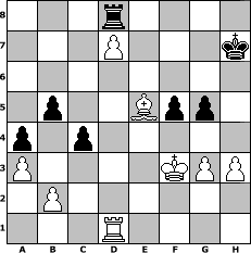 game notation in PGN-format [Event "unter uns Nr. 58"] [Site "www.myChess.de"] [Date "2025.10.15"] [Round "1"] [White "Master1"] [Black "faustballer"] [ECO "A40"] [WhitemyELO "1415"] [BlackmyELO "1445"] [Result "1-0"] [TimeControl "10/864000"] [WhiteDays "23"] [BlackDays "50"] [MyChessNo "133767"] 1. d4 e6 2. e3 a6 3. Bd3 Nf6 4. Nf3 Be7 5. Nbd2 O-O 6. O-O d6 7. Re1 Nc6 8. h3 h6 9. c3 b5 10. e4 Bd7 11. e5 dxe5 12. dxe5 Nd5 13. Nf1 f6 14. exf6 Bxf6 15. Ng3 Nce7 16. Ne4 Nf5 17. Nc5 Re8 18. Bxf5 exf5 19. Nxd7 Rxe1+ 20. Nxe1 Qxd7 21. Nf3 Rd8 22. a3 a5 23. Bd2 Nf4 24. Qb3+ Nd5 25. Rd1 Kh8 26. Be1 c6 27. Nd4 Bxd4 28. cxd4 a4 29. Qg3 Qd6 30. Qxd6 Rxd6 31. g3 Nb6 32. Bb4 Rd5 33. Bc5 Nd7 34. Ba7 Ne5 35. f4 Nf3+ 36. Kf2 g5 37. Kxf3 Kh7 38. fxg5 hxg5 39. Rc1 Rd7 40. Bb8 Rd8 41. Be5 Rc8 42. d5 c5 43. d6 c4 44. d7 Rd8 45. Rd1 1-0 position notation in FEN-format 3r4/3P3k/8/1p2Bpp1/p1p5/P4KPP/1P6/3R4 - - - 2 45 Captured white pieces: Captured black pieces: Click on a captured piece in order to display the desired move!