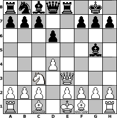 | game notation in PGN-format [Event "3.Nordsachsenturnier"] [Site "www.myChess.de"] [Date "2016.10.07"] [Round "1"] [White "Knight"] [Black "Steffi"] [ECO "C42"] [WhitemyELO "1214"] [BlackmyELO "1575"] [Result "0-1"] [TimeControl "10/1728000"] [WhiteDays "40"] [BlackDays "09"] [MyChessNo "105176"] 1. e4 e5 2. Nf3 Nf6 3. Nxe5 Nxe4 4. Qf3 Ng5 5. Qe3 Be7 6. Nc3 d6 7. Nf3 O-O 8. d4 Re8 9. Nxg5 Bxg5 0-1 position notation in FEN-format rnbqr1k1/ppp2ppp/3p4/6b1/3P4/2N1Q3/PPP1PPPP/R1B1KB1R - KQ - 0 10 Captured white pieces:                              Captured black pieces:                               Click on a captured piece in order to display the desired move!