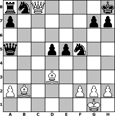 game notation in PGN-format [Event "Wrixum - Open die IX"] [Site "www.myChess.de"] [Date "2011.10.15"] [Round "1"] [White "Sanji"] [Black "73DADDELDU37"] [ECO "B20"] [WhitemyELO "1537"] [BlackmyELO "1431"] [Result "1-0"] [TimeControl "10/2592000"] [WhiteDays "88"] [BlackDays "86"] [MyChessNo "76866"] 1. e4 c5 2. d4 cxd4 3. c3 dxc3 4. Nxc3 e6 5. Bc4 Bb4 6. Nf3 Qc7 7. Qe2 Bxc3+ 8. bxc3 b5 9. Bxb5 Qxc3+ 10. Qd2 Qxa1 11. O-O Qb1 12. Bb2 Qxe4 13. Rc1 Ne7 14. Ne5 O-O 15. Bd3 Qb7 16. Qe2 d5 17. Rc3 f6 18. Qh5 Nf5 19. Rb3 Qc7 20. Rc3 Qa5 21. Rxc8 Rxc8 22. Qf7+ Kh8 23. Qxe6 fxe5 24. Qxc8+ 1-0 position notation in FEN-format rnQ4k/p5pp/8/q2ppn2/8/3B4/PB3PPP/6K1 - - - 0 24 Captured white pieces: ![]() ![]() ![]() ![]() ![]() ![]() ![]() ![]() ![]() ![]() ![]() ![]() ![]() ![]() ![]() Captured black pieces: ![]() ![]() ![]() ![]() ![]() ![]() ![]() ![]() ![]() ![]() ![]() ![]() ![]() ![]() ![]() Click on a captured piece in order to display the desired move!